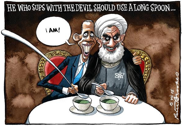 “Good, eh? It’s because I came across this cartoon the other day about the US using a long spoon to negotiate with Iran.”[8]