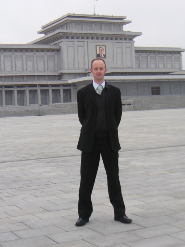 Standing outside Kumsusan Memorial Palace where President Kim Il Sung lies in state. I have now seen Lenin, Mao and Kim Il Sung – a notable treble!