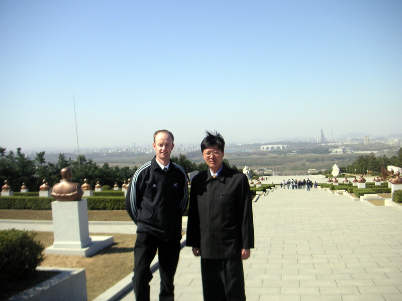 Overlooking Pyongyang from the Revolutionary Martyrs Cemetery. I am standing with Mr. Kim who was one of my tour guides when I traveled to Korea, with Koryo Tours, in October 2004. Mr. Kim appears in the recent Nick Bonner photograph book, ‘Welcome to Pyongyang, ‘released in 2007.
