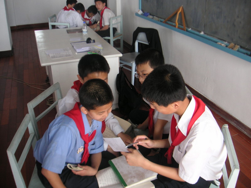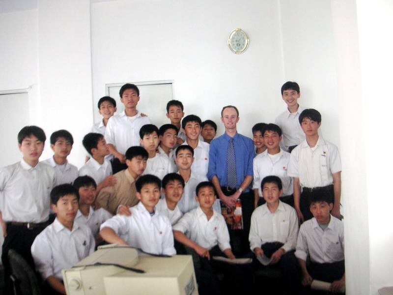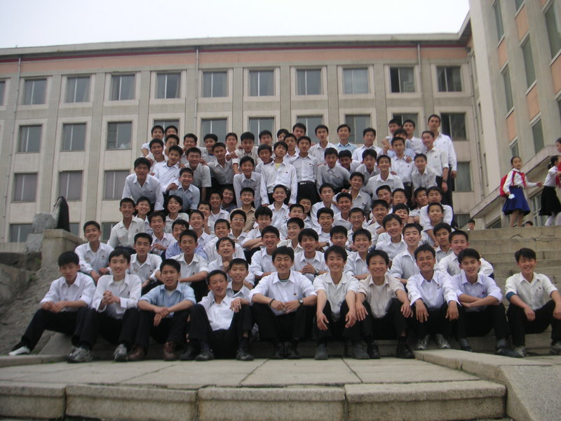 6th Grade students at Kumsong Middle School No. 1. Note that at two of the schools I taught at, Kumsong Middle School No.1 and Kumsong College (the elite schools), there were only male students. The schools are divided into a computer section and an arts section. Girls can attend the arts section. I asked why they weren’t in the computer part of the school. “Girls don’t do computers,” was the reply. That is where my inquiry ended. Near the end of my time in Pyongyang the Arts School Principal asked me to take some English lessons in his area. While I have no complaints about the computer boys – they were enthusiastic, energetic and hard working, the girls in the Arts School were so bubbly and willing to take more ‘risks’ in using the English language. They totally eclipsed the Art School boys who seemed rather timid. I hope, should I go back to teach in Pyongyang, to have more time teaching in the Arts School.